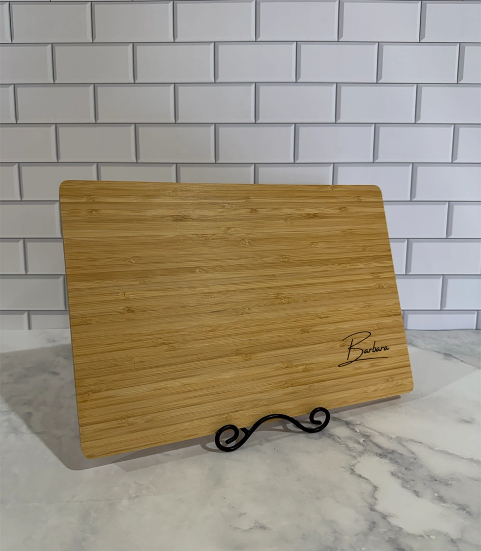 Whether used as a functional cutting surface, a serving board, or a decorative kitchen piece, this bamboo cutting board makes a meaningful and practical gift.